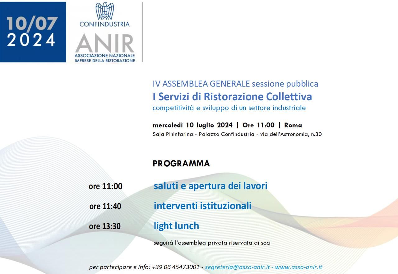 La quarta assemblea generale di ANIR, associazione aderente a Confindustria Servizi HCFS, segna un ulteriore momento di crescita per l’intero settore della ristorazione collettiva. Quattro anni di grande lavoro, da parte di ANIR Confindustria e di tutte le aziende che rappresenta, per affrontare una crisi senza precedenti che stanno portando anche all’individuazione, concertata con le istituzioni, per poter puntare ad uno sviluppo sostenibile. Presenti durante l’assise, oltre alle tante aziende della ristorazione collettiva, anche rappresentanti delle Istituzioni, di associazioni datoriali e di associazioni sindacali.